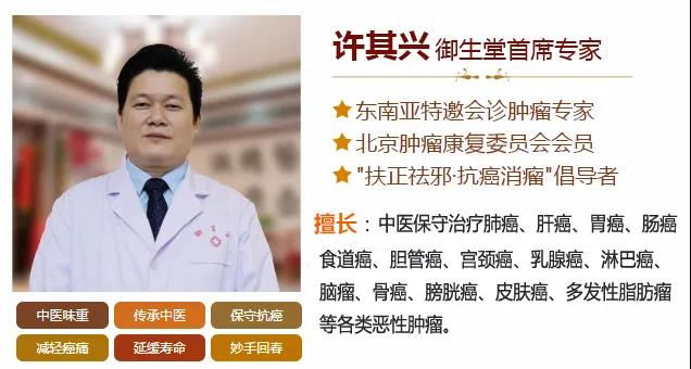 另外,南宁御生堂肿瘤科首席专家许其兴出身中医世家,其太祖父是许氏第二代传人,清朝著名医学家,曾根据《内经》、《伤寒论》、《本草经》等古典医籍,著书立说,医名大噪,被召入宫,融合御医治疗和民间偏方奠基了医疗体系。